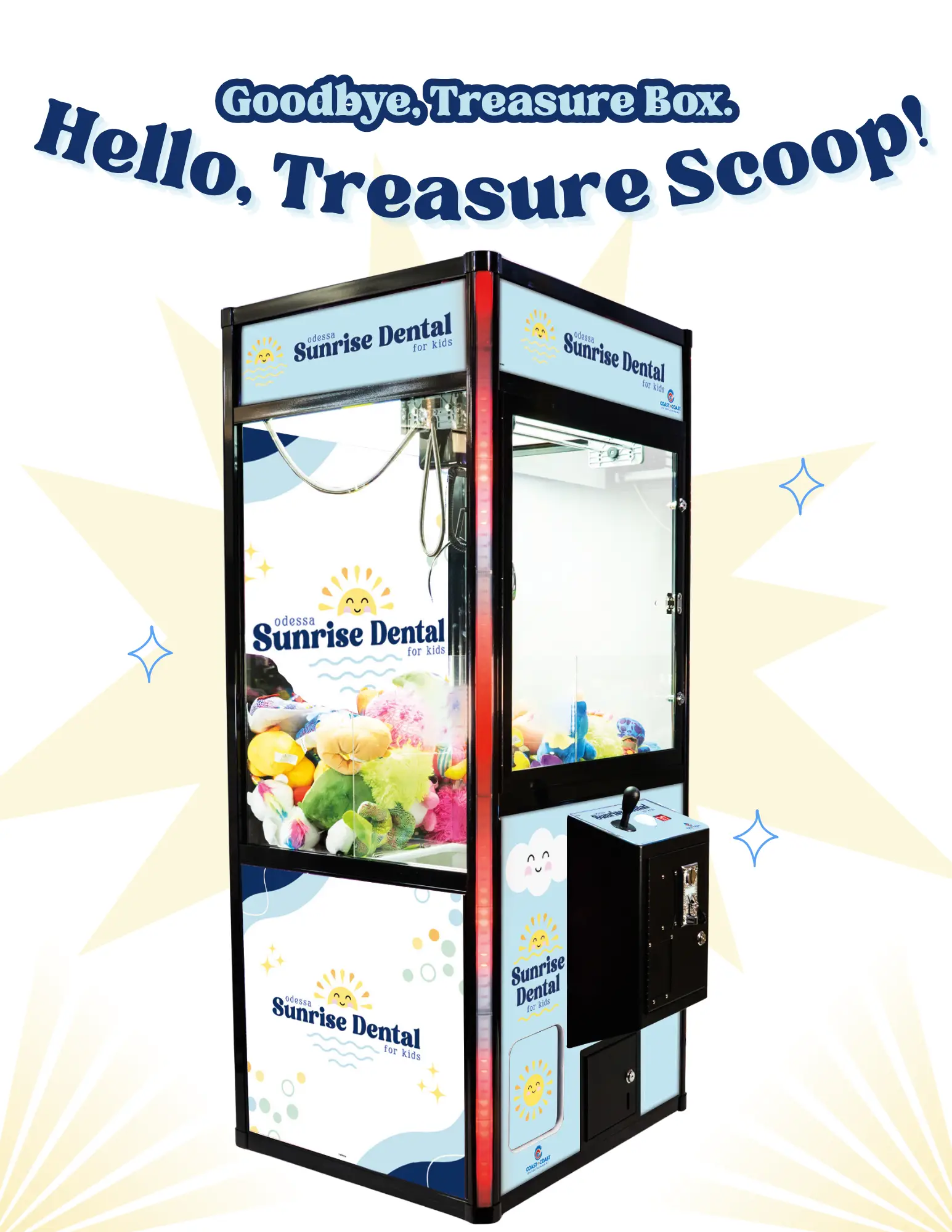 From ceiling TVs in treatment rooms to a fun mural in the lobby and our scoop machine, our office is designed to make visits fun, positive, and kid-friendly from the moment your family walks in.